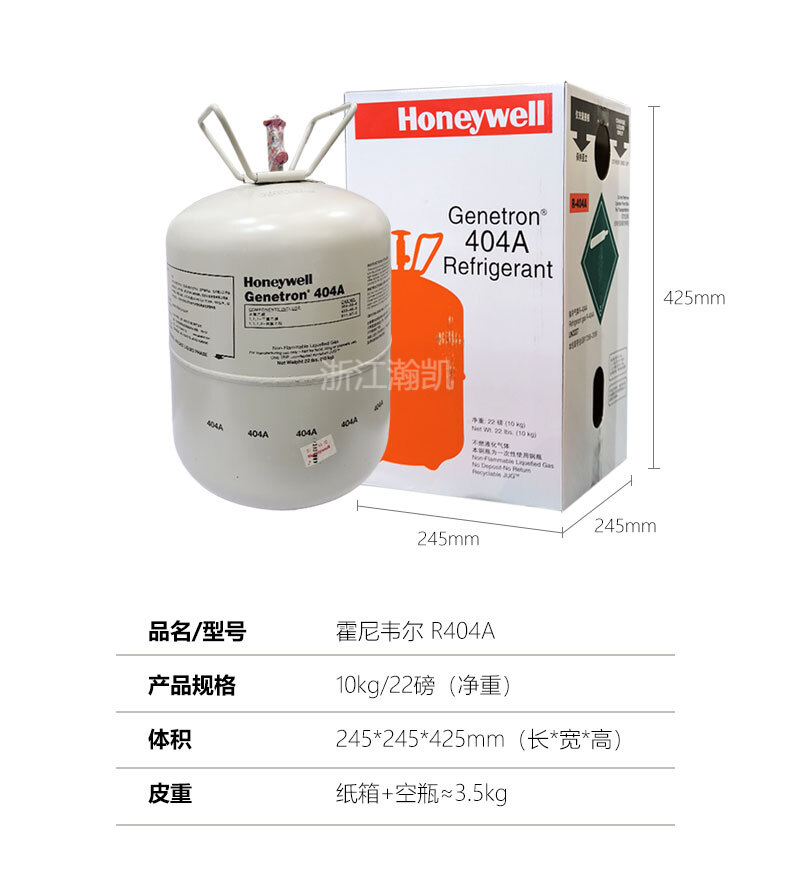 霍尼韋爾R-404A制冷劑,別名R404A,商品名稱Genetron® 404A冷媒。由于霍尼韋爾R-404A冷媒屬于HFC型非共沸環(huán)保制冷劑(完全不含破壞臭氧層的CFC、HCFC),得到目前絕大多數(shù)國(guó)家的認(rèn)可并推薦的低溫環(huán)保制冷劑,廣泛用于新冷凍設(shè)備上的初裝和維修過(guò)程中的再添加。