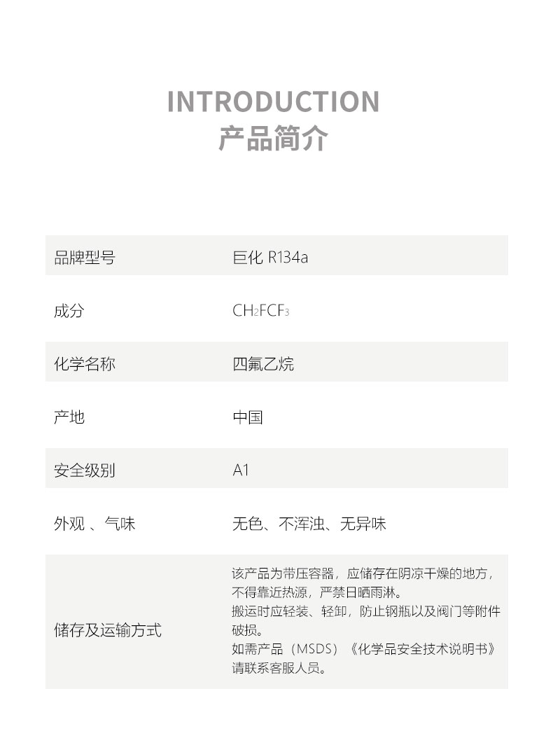 品牌型號:巨化R-134a